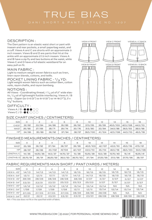 Dani Shorts Pattern Sizes 0-18
