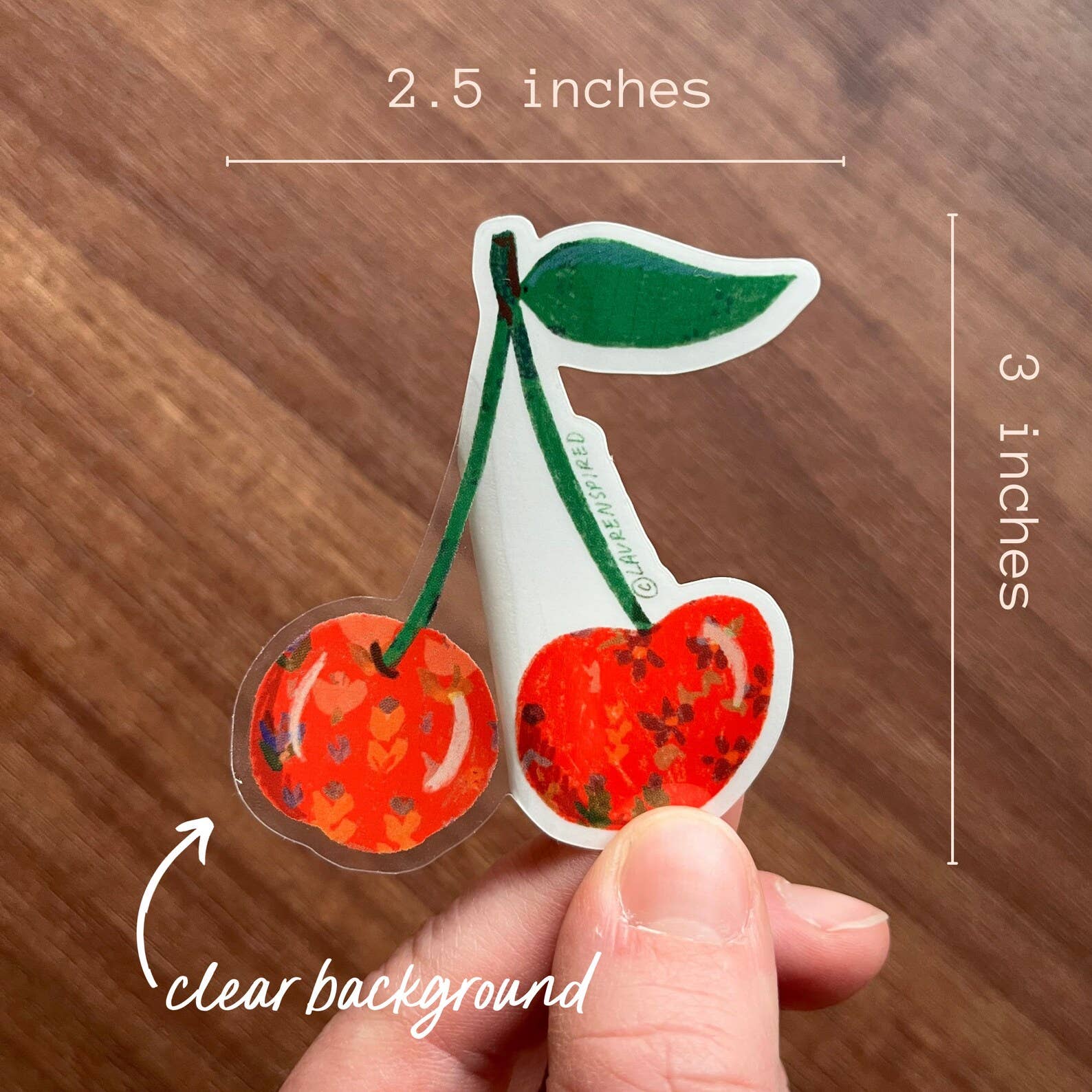 Cute Cherries Sticker for summer to decorate water bottles, laptops, kindles, journals, windows, or other smooth surfaces.