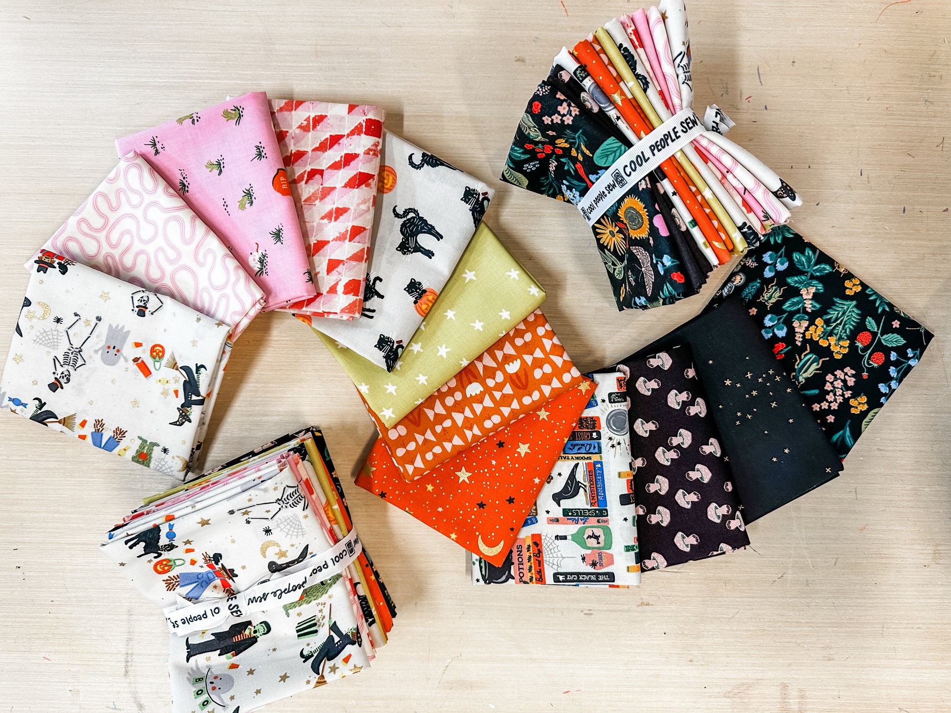 12 fat quarters of spooky~ooky fabrics from our favorite witchy fabric designers! Just waiting to haunt your halls - or stash cabinet! What will you make??