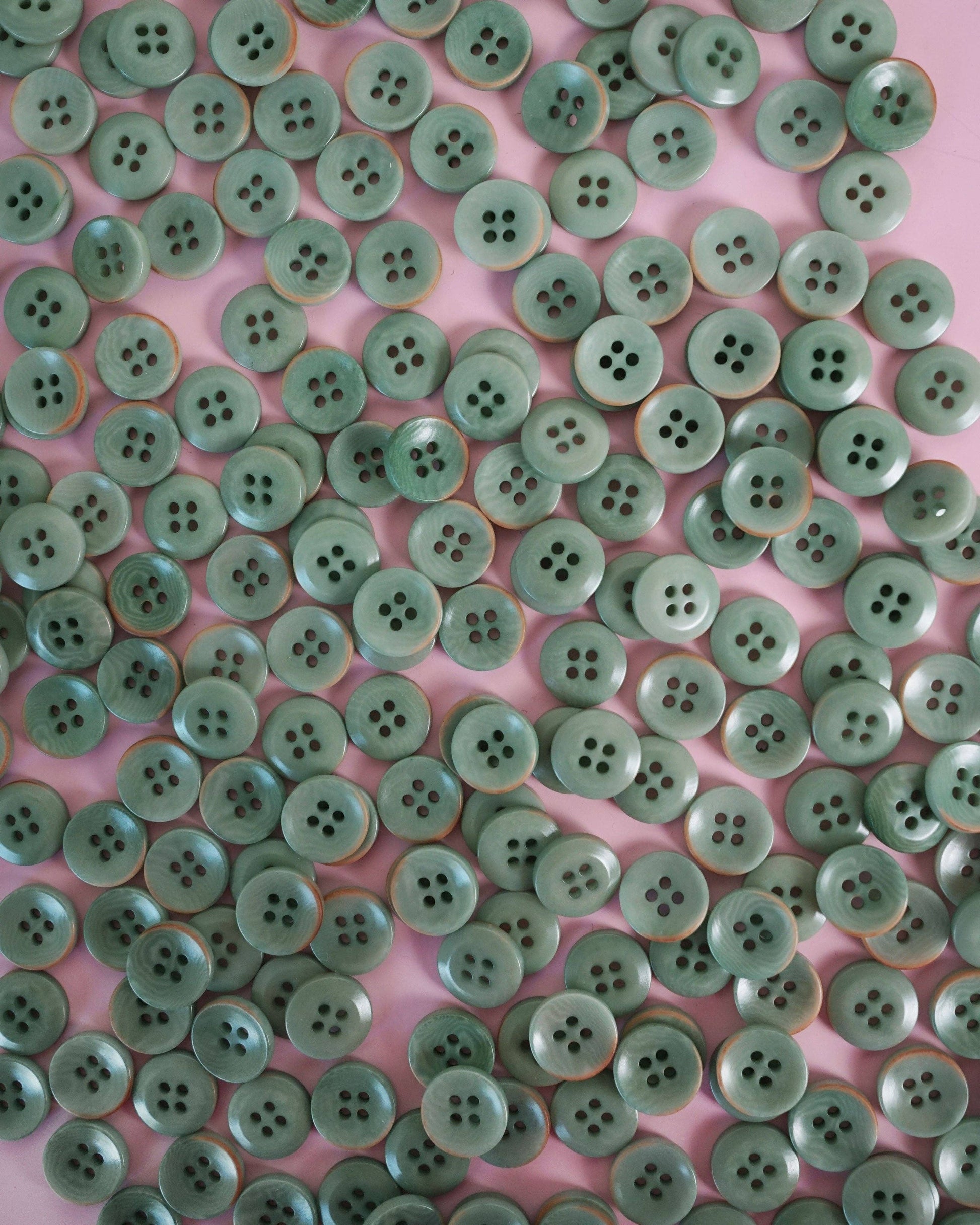 Crafted from the seeds of the Tagua palm tree, corozo buttons are remarkably hard and scratch-resistant. Their natural grain readily absorbs dyes, ensuring vibrant, fade-resistant color and a unique look for each individual button.
