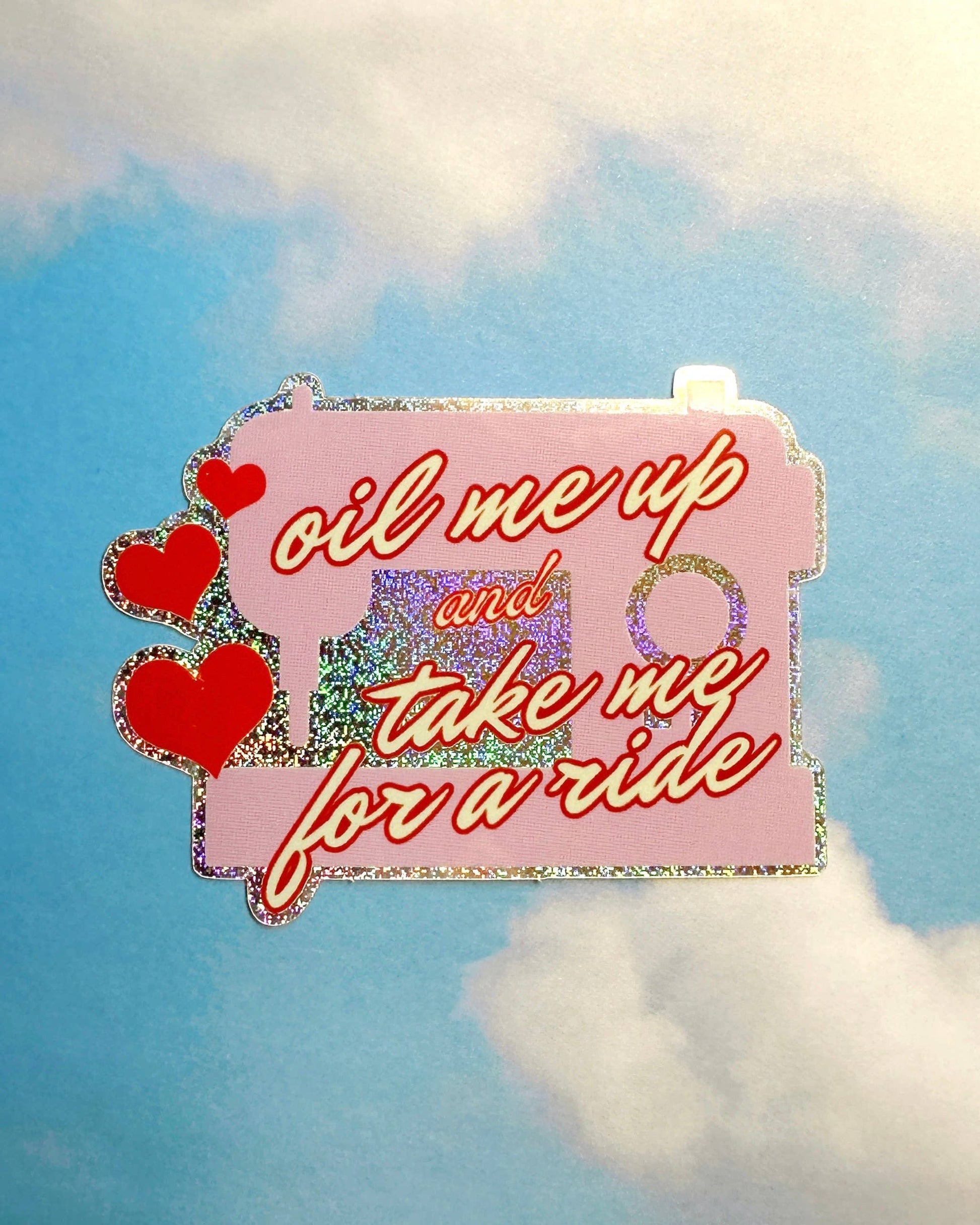 Professionally printed vinyl sewing sticker. Measures approximately 2.8 by 2.1 inches. The perfect size for sticking on your sewing machine, laptop, or water bottle.