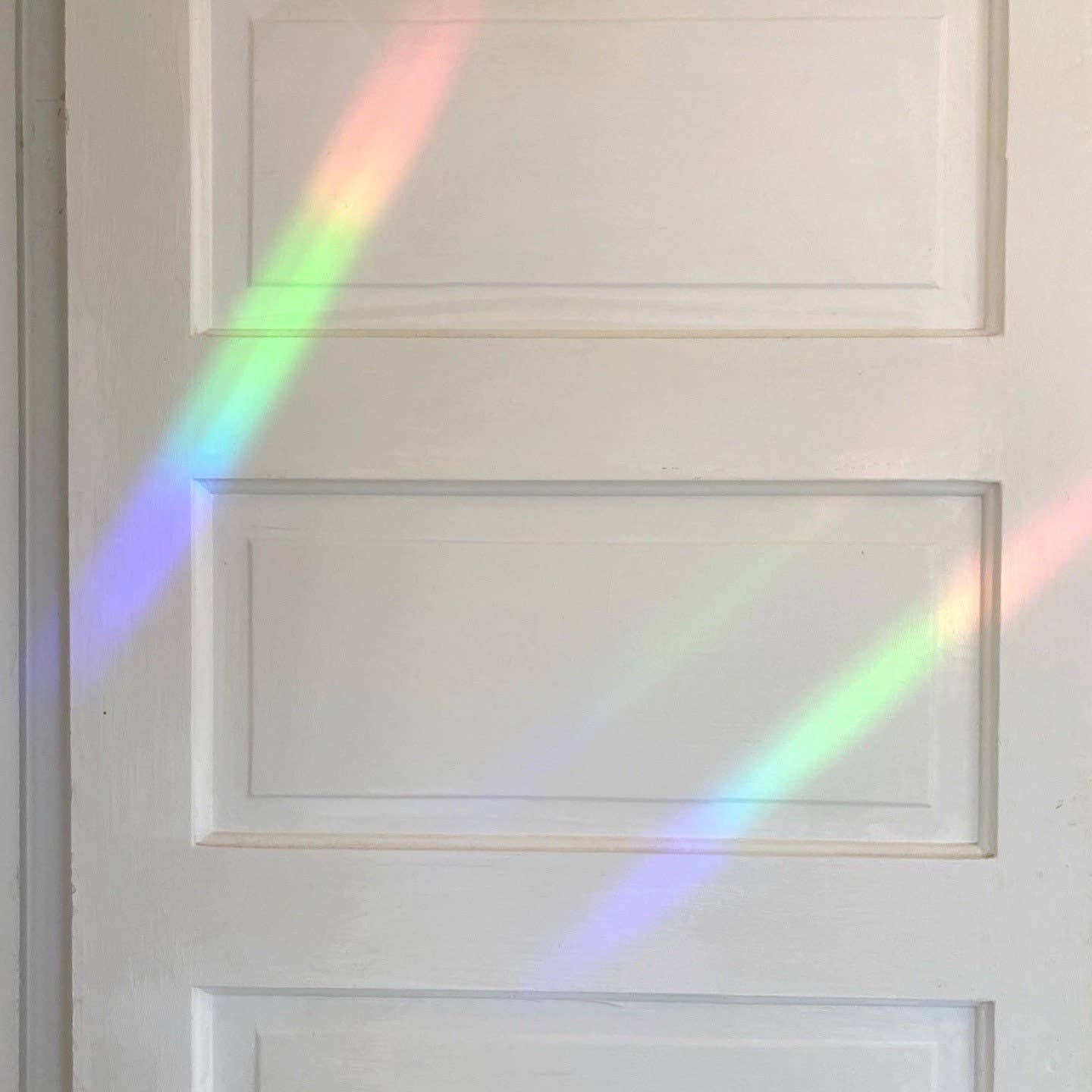 Prismatic Vinyl Rainbow Maker Sticker Featuring A Quilt Block Design In Pink And Peach. Place In A Sunny, South Facing Window And See The Rainbows Appear All Over The Room!
