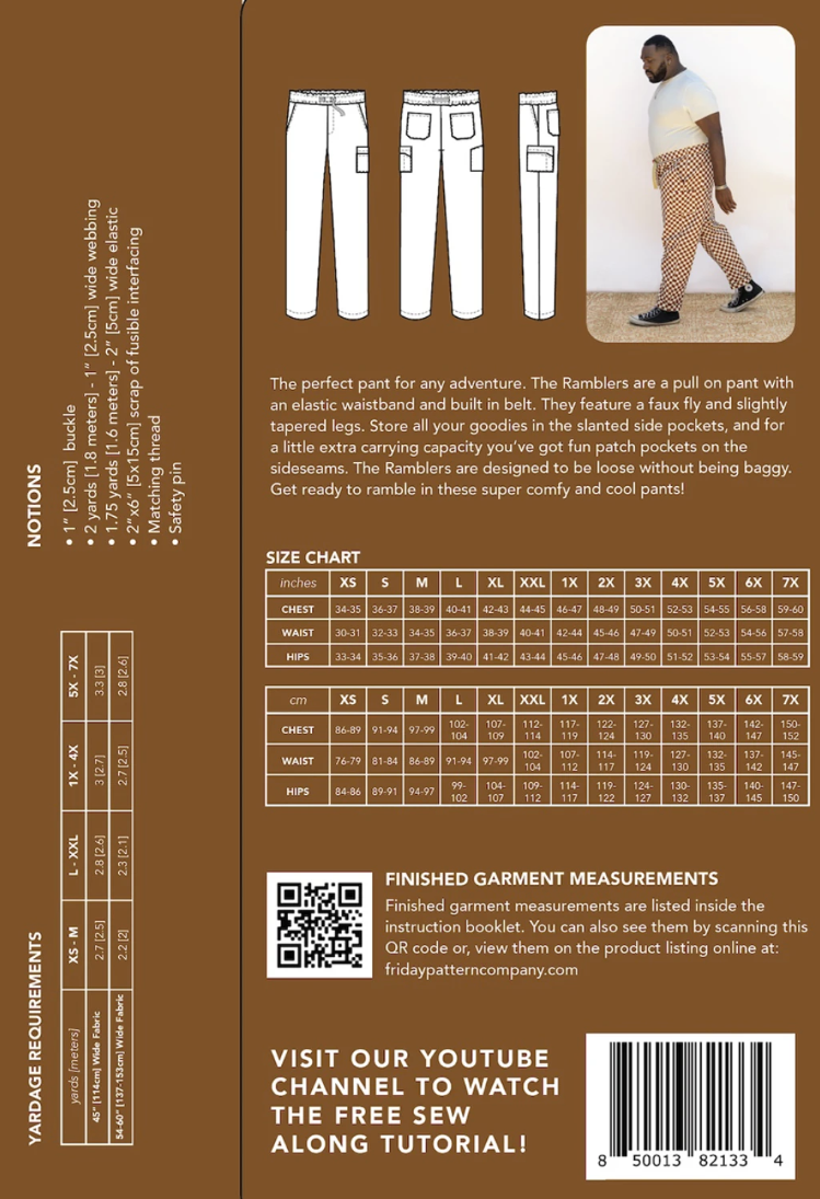 The perfect pant for any adventure. The Ramblers are a pull on pant with an elastic waistband and built in belt. They feature a faux fly and slightly tapered legs. Store all your goodies in the slanted side pockets, and for a little extra carrying capacity you’ve got fun patch pockets on the sideseams. The Ramblers are designed to be loose without being baggy. Get ready to ramble in these super comfy and cool pants!