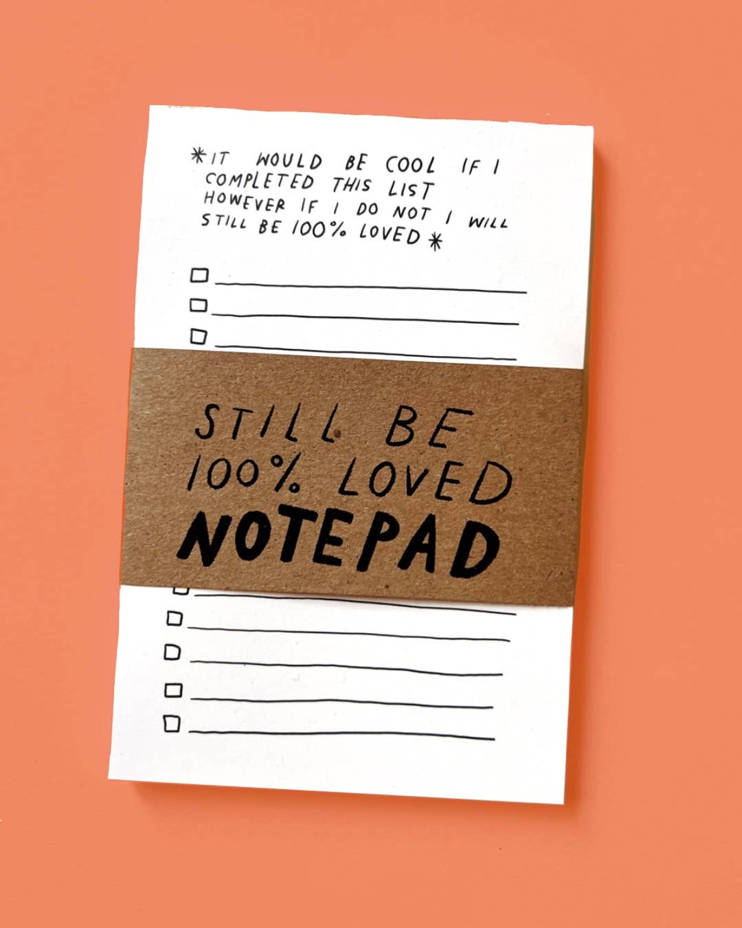 4X6" notepad with 50 sheets of printed 70 lb paper & a cardboard back. Printed in the USA.