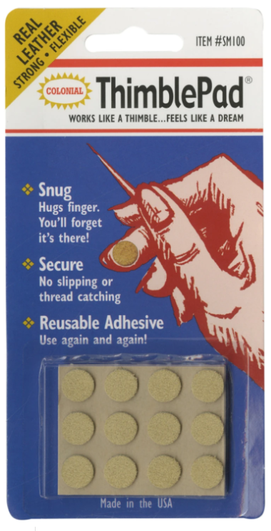 Works like a thimble, feels like a dream! Reusable self adhesive leather pad sticks to your fingertip and is tough enough to handle the heaviest stitching projects. Its lightweight construction gives you more needle control, so even the finest and most delicate stitching is a pleasure.